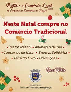 A Câmara Municipal de Salvaterra de Magos dinamiza durante o mês de dezembro a “Campanha Natal e o Comércio Local”, apresentando uma agenda de iniciativas bastante diversificada. Da extensa lista de ofertas fazem parte a Feira do Livro, teatro infantil, animação de rua, concertos de natal, exposições, visitas do Pai Natal e actividades solidárias.
