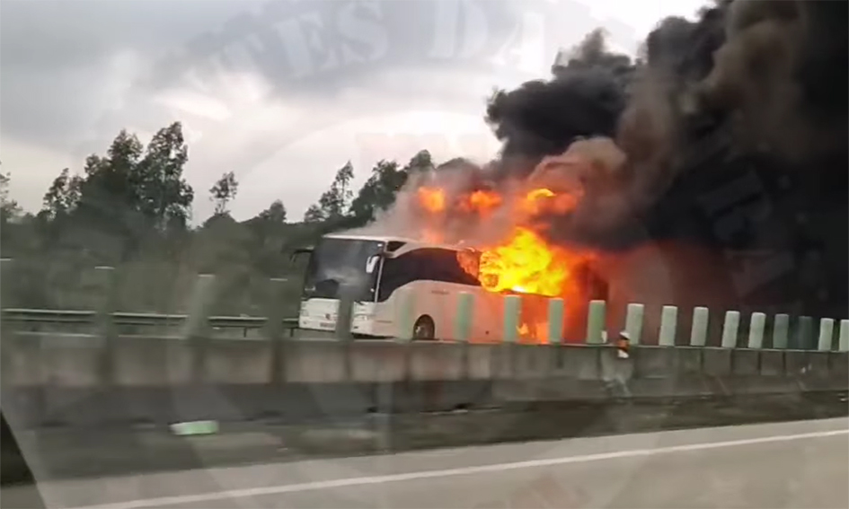 O autocarro transportava 48 pessoas e começou a arder na A1, precisamente no quilómetro 37, concretamente entre Carregado e Aveiras de Cima, mais próximo desta localidade do Concelho de Azambuja. Fonte da ANEPC adiantou que o autocarro ficou totalmente consumido pelas chamas e que três dos ocupantes sofreram ferimentos ligeiros. Tanto o condutor como os passageiros saíram da viatura atempadamente, ainda de acordo com a mesma fonte. No local estão ainda 35 operacionais apoiados por 14 veículos.